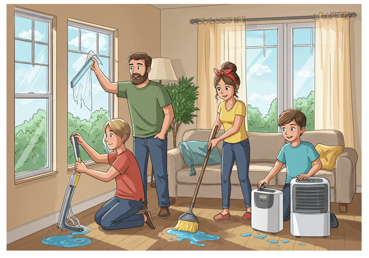 - 2. 창문 틈새 실링: 바람과 비가 새지 않도록 실리콘 마감 보강